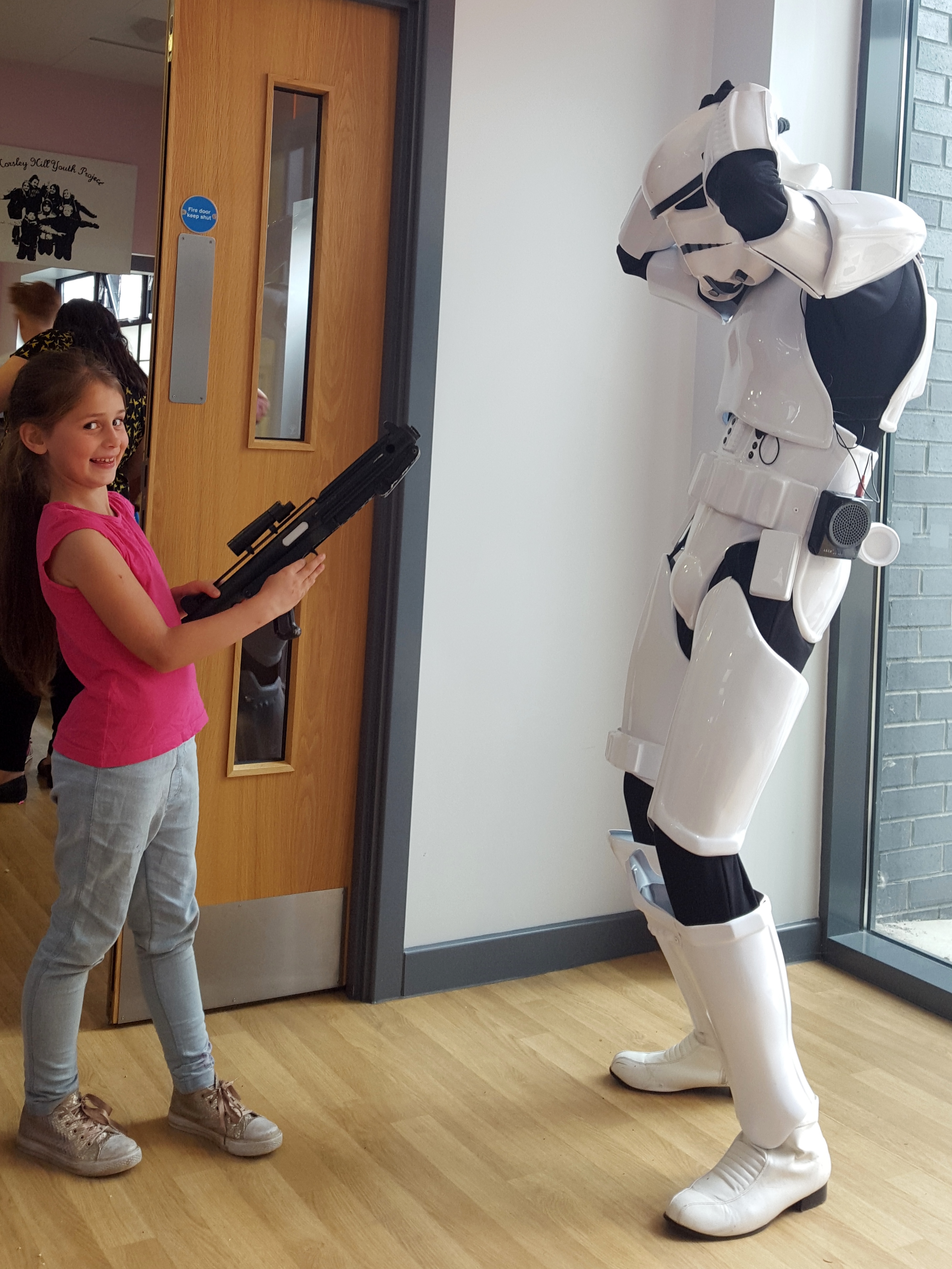 Sophie shooting Stormtrooper